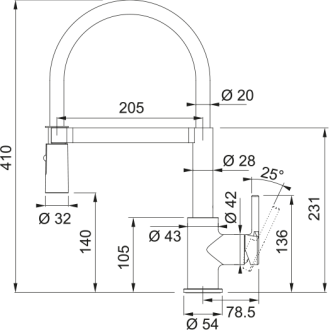 Hauteur totale : 410 mm
