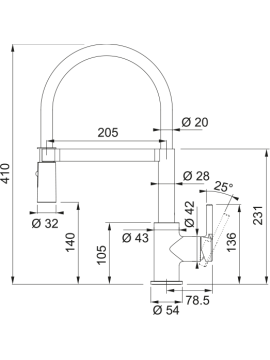 Hauteur sous bec : 285 mm